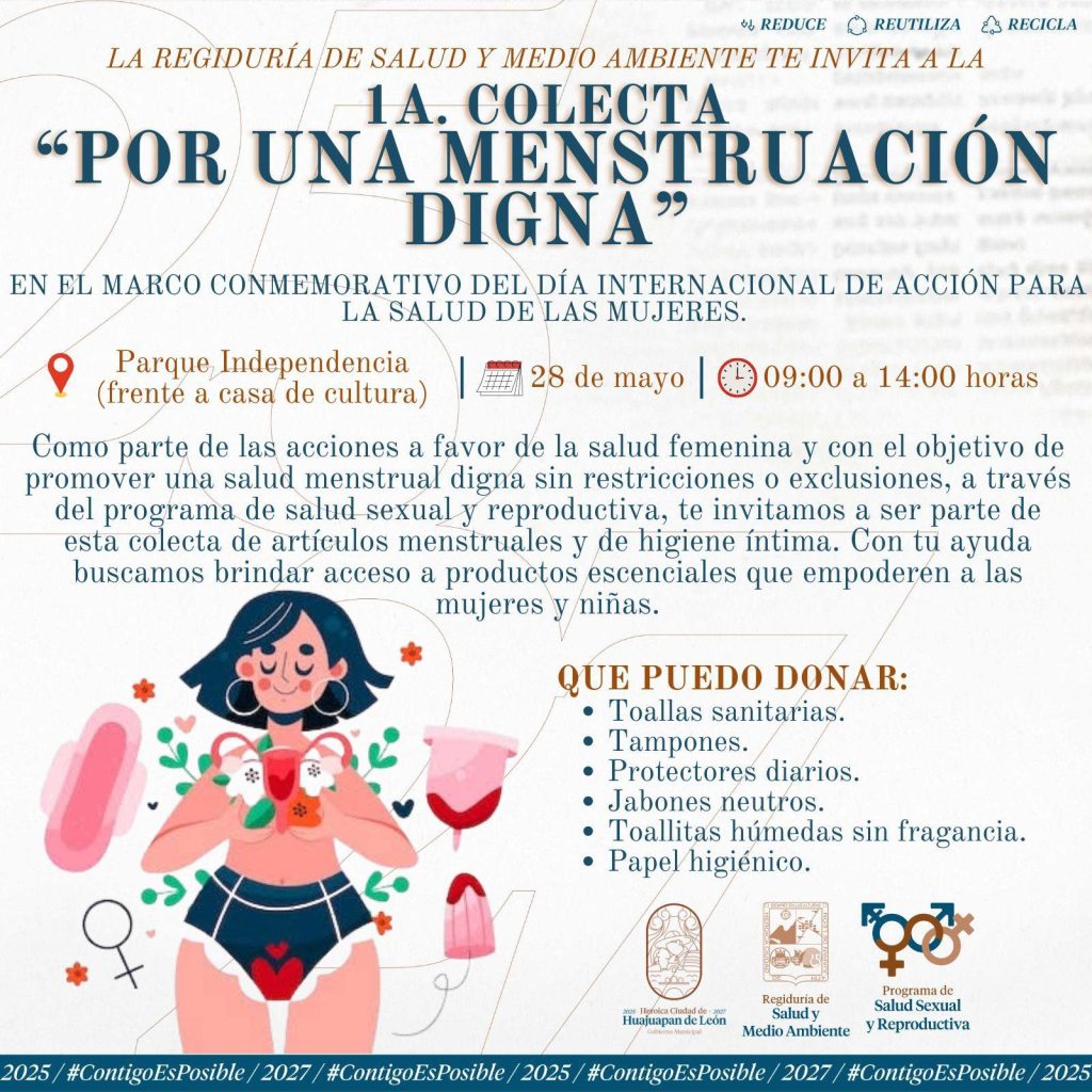 26 de mayo. Con el fin de garantizar el acceso a productos de higiene menstrual a adolescentes, a través de una colecta el Ayuntamiento de Huajuapan de León pretende recaudar dichos artículos para entregarlos a alumnas, principalmente de nivel secundaria, que le sea difícil acceder a estos productos.
