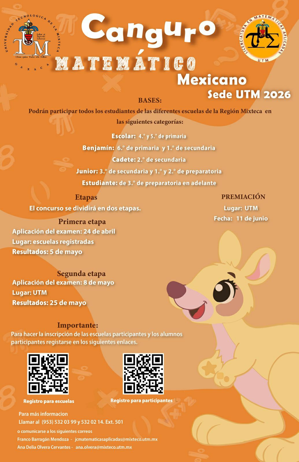 18 de abril. La Universidad Tecnológica de la Mixteca (UTM) ha lanzado oficialmente la convocatoria para el concurso Canguro Matemático Mexicano 2026, una iniciativa que cumple 11 años fomentando el pensamiento lógico en la región.