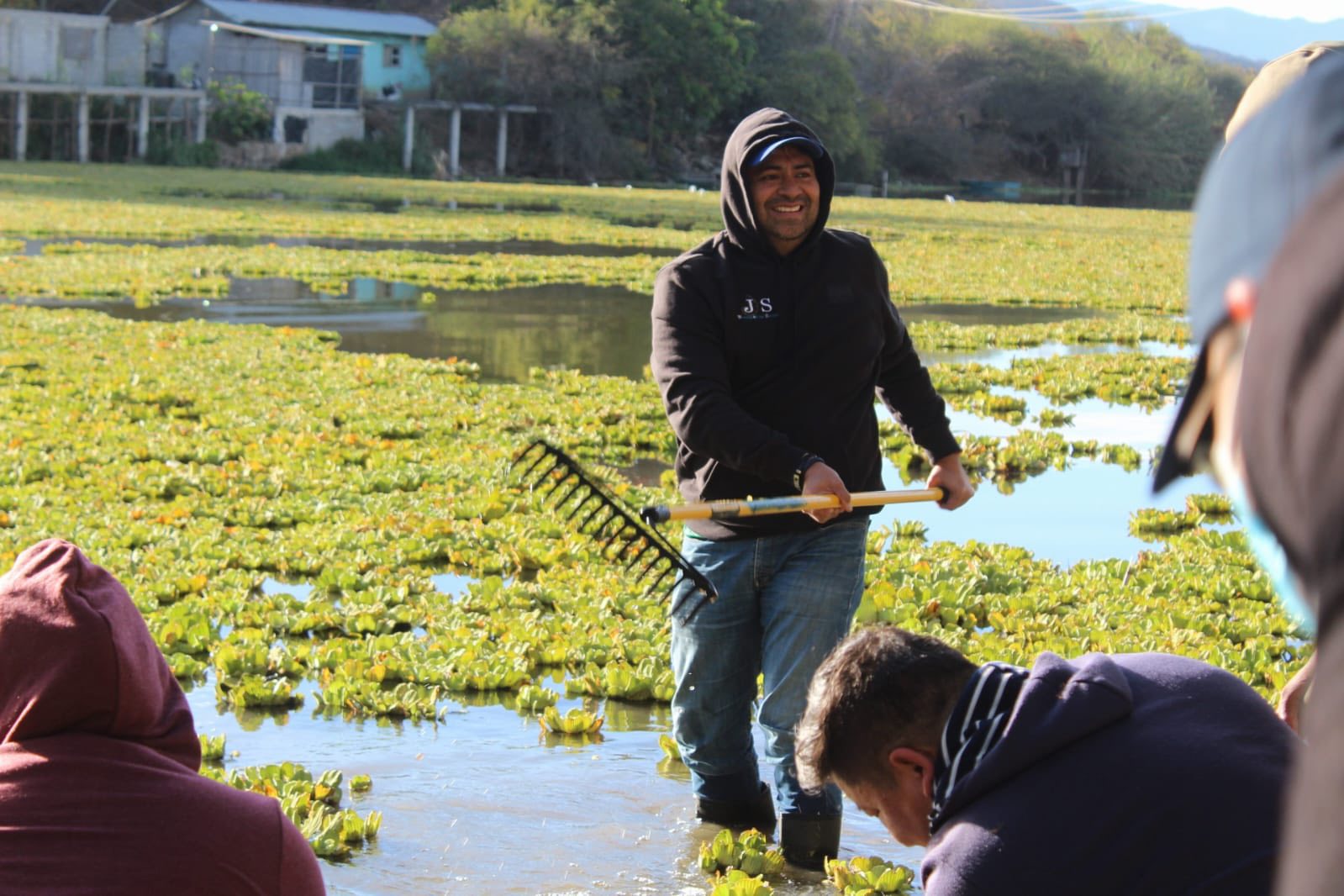 15 de abril. El presidente municipal, Luis de León Martínez Sánchez, reafirmó su compromiso con el saneamiento de la presa de Yosocuta, al anunciar tres días adicionales de tequio para combatir la plaga de lirio acuático.