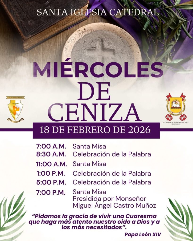 17 de febrero. El Miércoles de Ceniza marca el inicio de la cuaresma, esta fecha da la oportunidad para reflexionar sobre nuestras acciones y buscar la reconciliación con Dios, así lo mencionó el obispo de Huajuapan, Miguel Ángel Castro Muñoz.