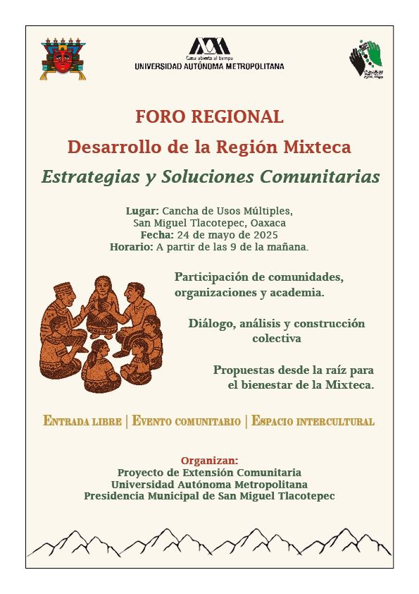 23 de mayo. El presidente municipal de San Miguel Tlacotepec, Marco Antonio Salazar Cuevas, informó que este sábado se realizará el foro denominado “Desarrollo de la Región Mixteca”, cuyo objetivo es impulsar acuerdos entre la Universidad Autónoma Metropolitana (UAM) con las autoridades municipales para la elaboración de proyectos relativos a la conservación y aprovechamiento del agua para garantizar ese líquido a las comunidades.