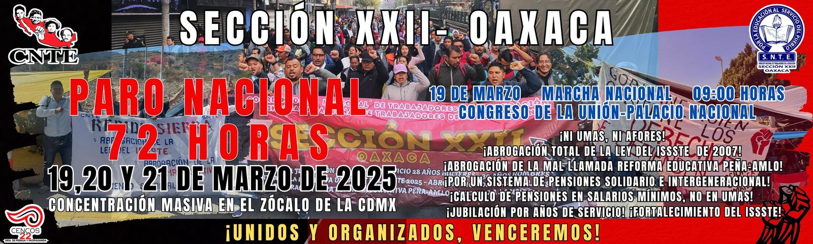 Asimismo, la abrogación de la ley del ISSSTE 2007 y el sistema de cuentas individuales, entre otras demandas.