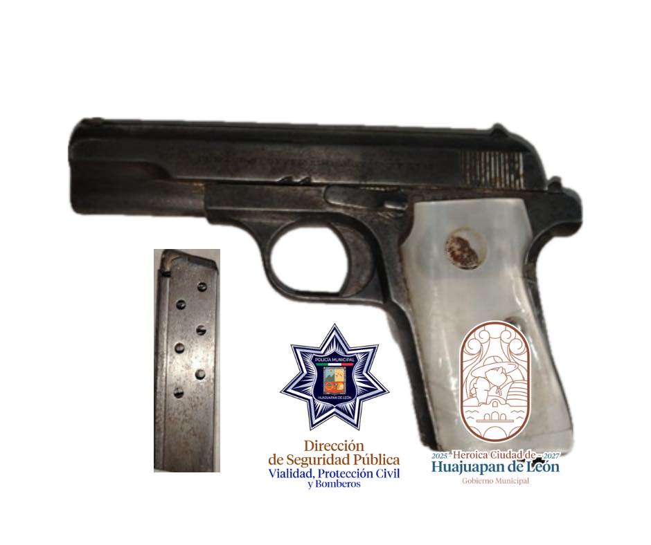 En atención a un reporte emitido por la ciudadanía a través del 9-1-1, los oficiales acudieron al lugar, lo que permitió la detección y aseguramiento de un arma de fuego corta tipo escuadra, color metálico con empuñadura blanca, misma que había sido dejada sobre la vía pública.